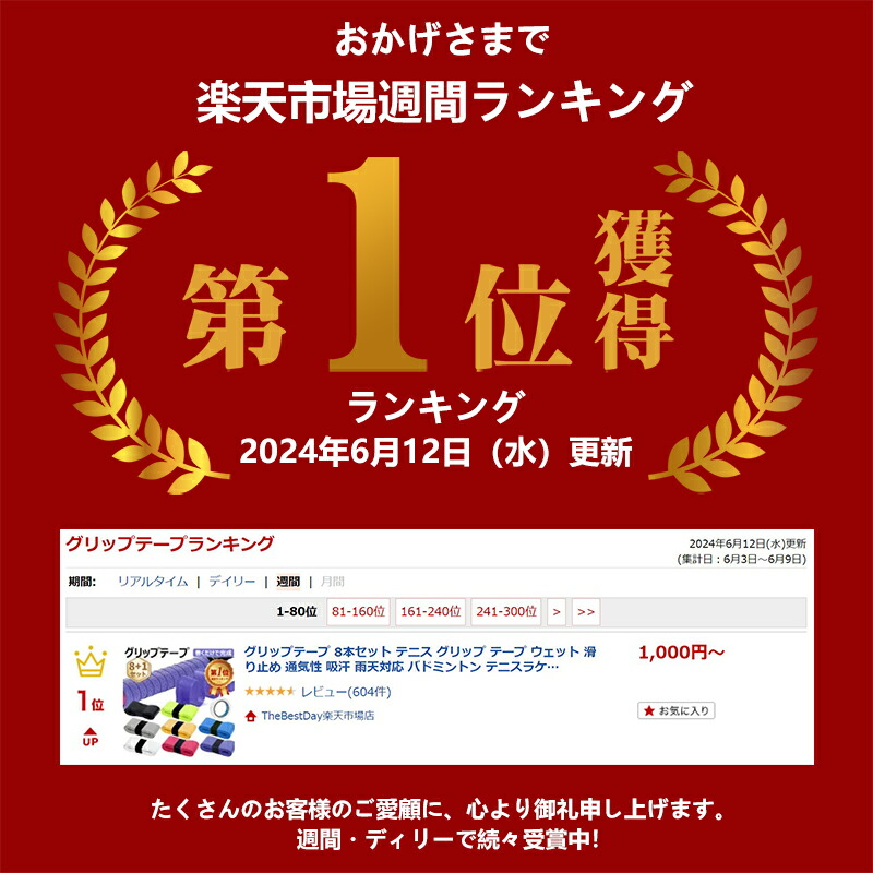 【1000件レビュー突破】楽天1位受賞 グリップテープ 8本セット テニス グリップ テープ ウェット 滑り止め 通気性 吸汗 雨天対応 バドミントン テニスラケット ゴルフ 釣り竿 自転車 野球 ダンベル用 仕上げ止めテープ付き しっとりとした握り心地 レビュー特典付き
