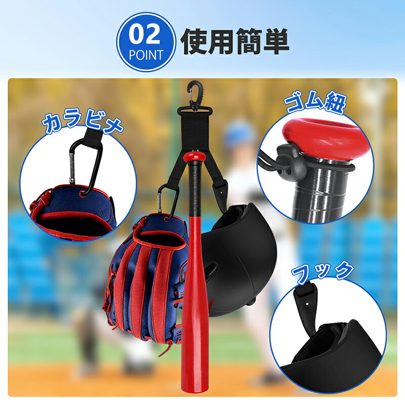 | 【使い方はアイデア次第】 | 野球グローブ・バット・ヘルメットはもちろん、バッグ、タオル、小物まで、掛けたいものに合わせて使い分けできます。生活用品・アウトドア・小物類など、使う人の工夫で活躍シーンが広がる多機能フックです。 |