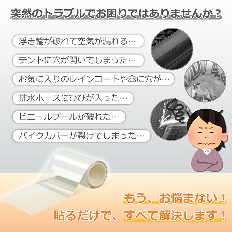 補修テープ 防水テープ 強力防水 TPU 透明/白/黒 10cm×1.5m 浮き輪 ビニールブール エアマット 防水 漏れ防止 穴修理 インフレータブルボート テント補修 レインウェア/傘/寝袋/エアベッド/子供用プール 耐久性抜群 自由カット 縫い目漏れ防止 充気製品修理テープ 送料無料
