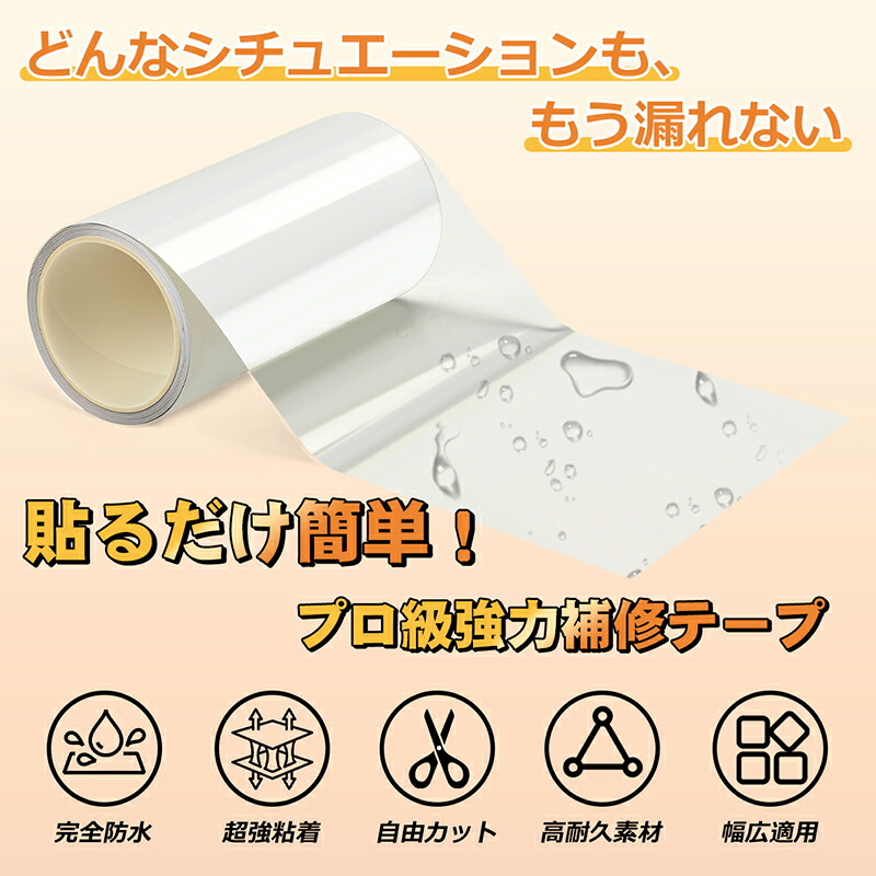 | ✅ 【超強力で剥がれない信頼の粘着】 | 【超強力で剥がれない信頼の粘着】特別に開発した高粘着層により、従来の補修テープでは難しかった曲面や継ぎ目にもしっかり密着。長時間使用や水没後も剥がれにくい耐久性を実現。 |