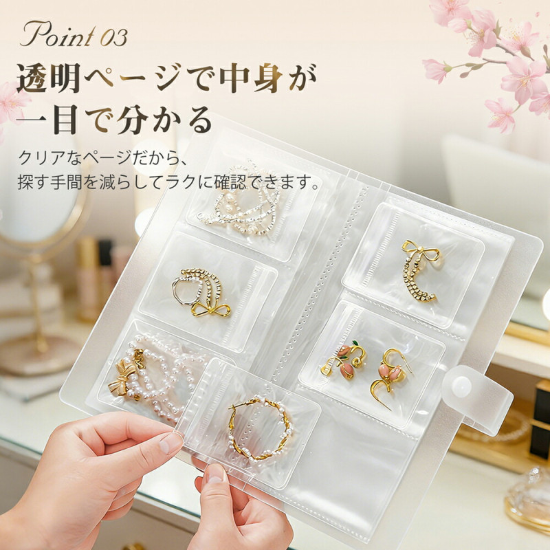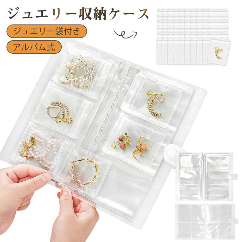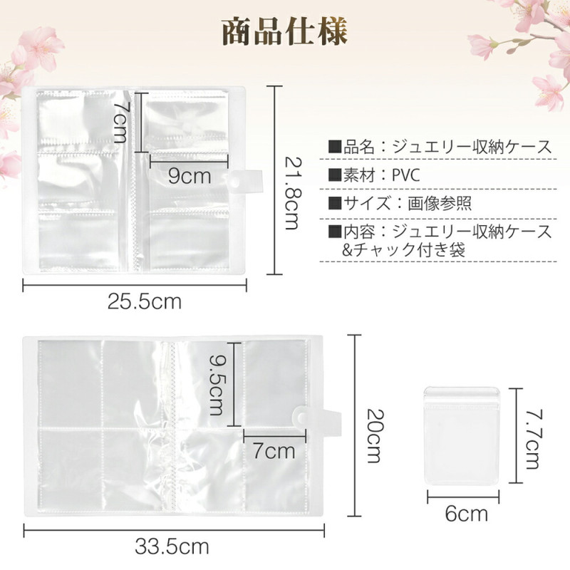 ジュエリー収納 ケース 3ポケット 4ポケット チャック袋付き アルバム型 ノートタイプ クリア トレカケース コレクトブック トレカファイル カードファイル アクセサリー 収納 ケース ネックレス ピアス 指輪 イヤリング 収納 推し活 オタ活 可愛い おしゃれ クリアファイル