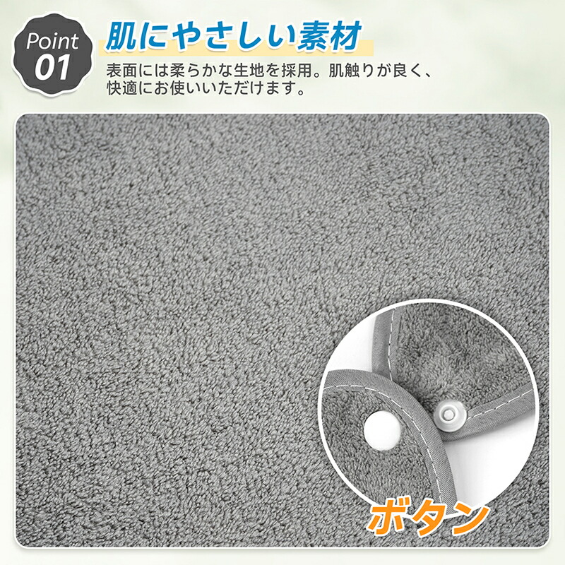 | 【食事時間を快適に やわらか肌触り】 | 表面には、ふわふわ素材を採用。高齢者の方や、肌への摩擦が気になるの方でも快適にご使用いただけます。 |